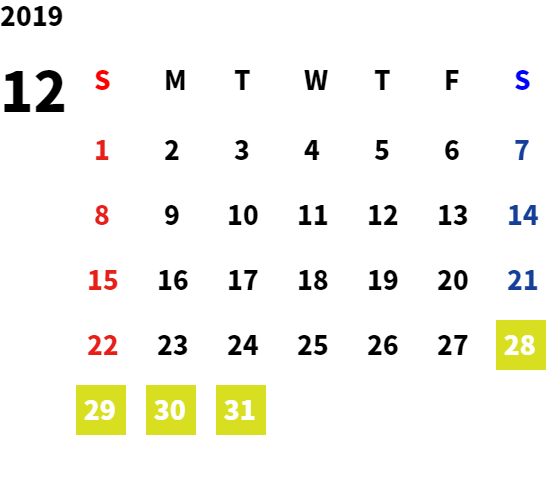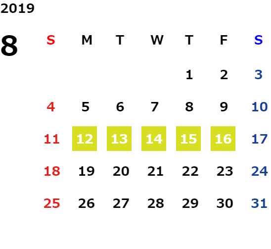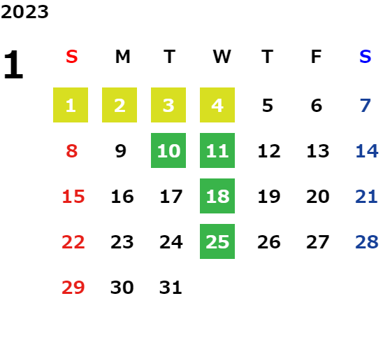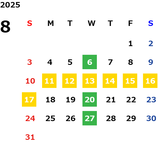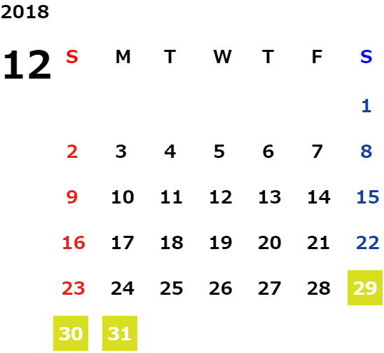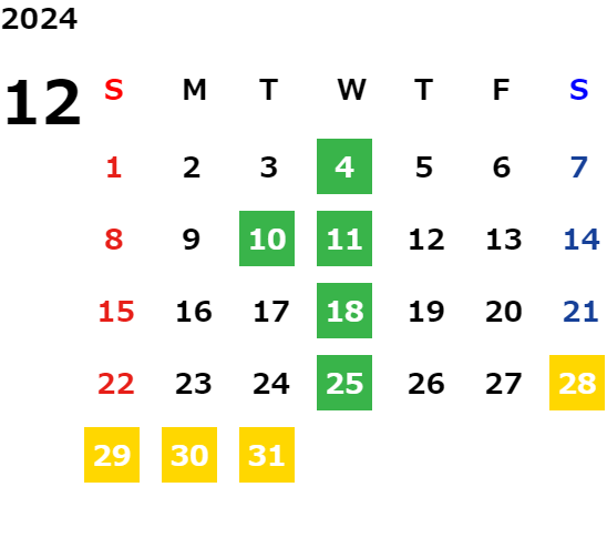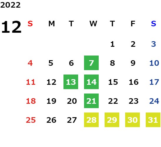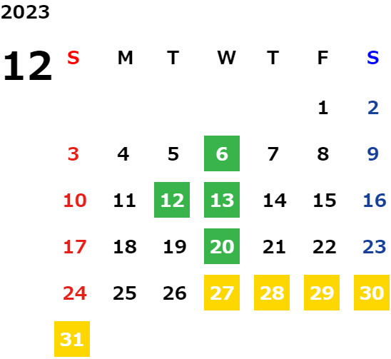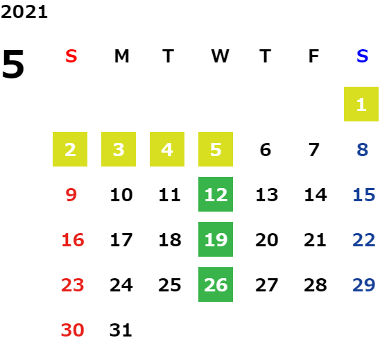 営業日カレンダー