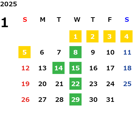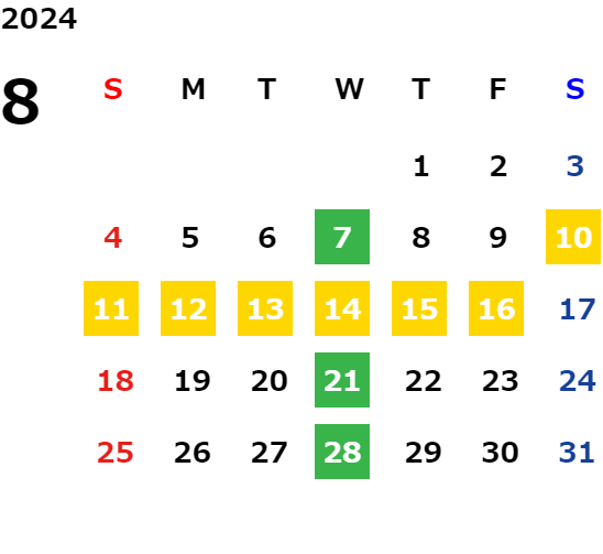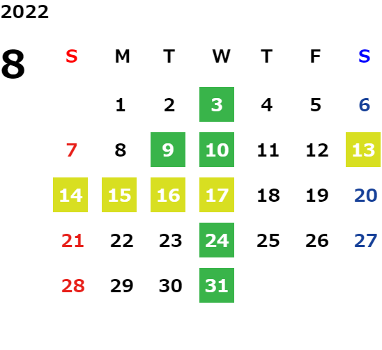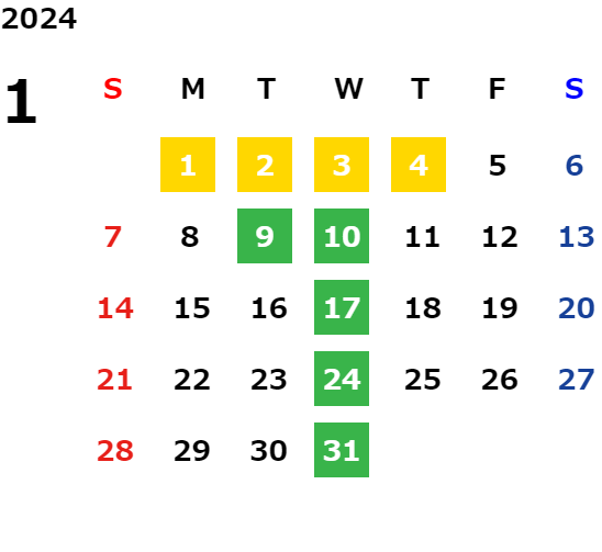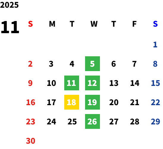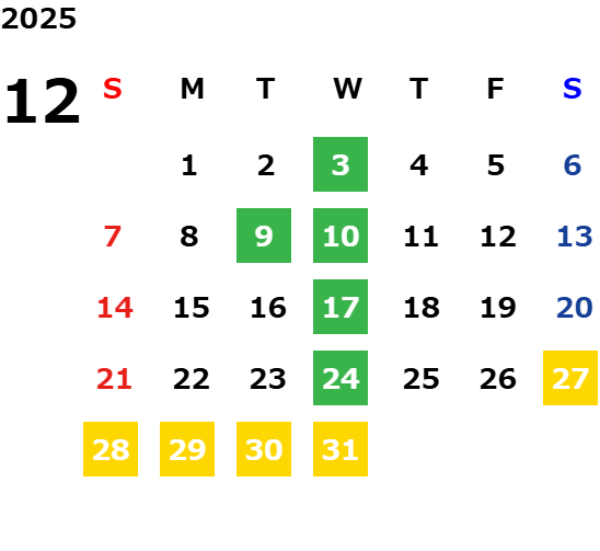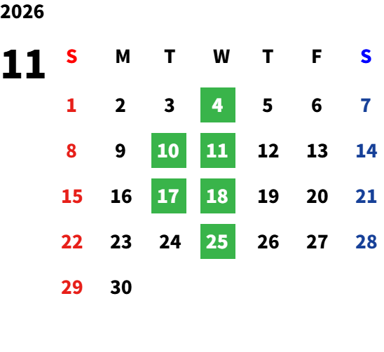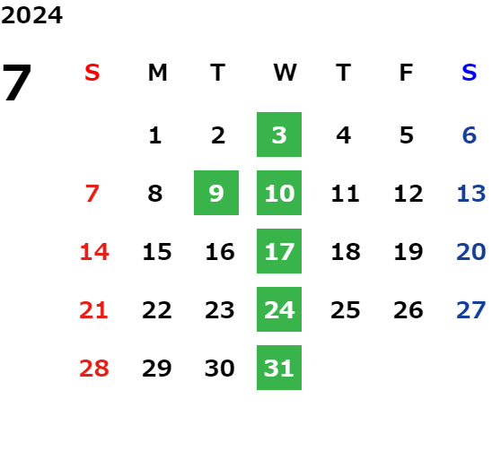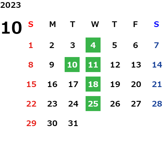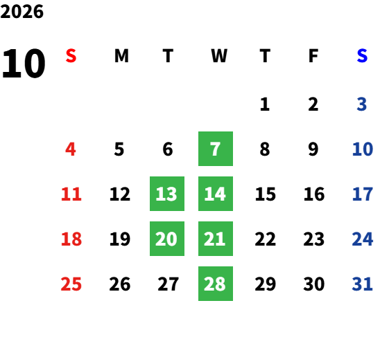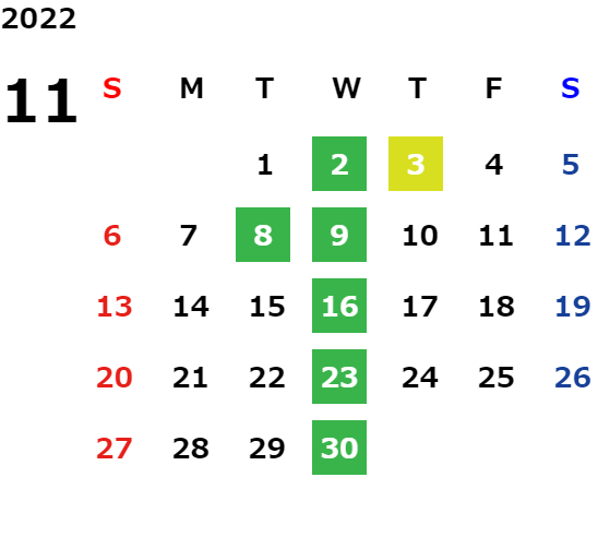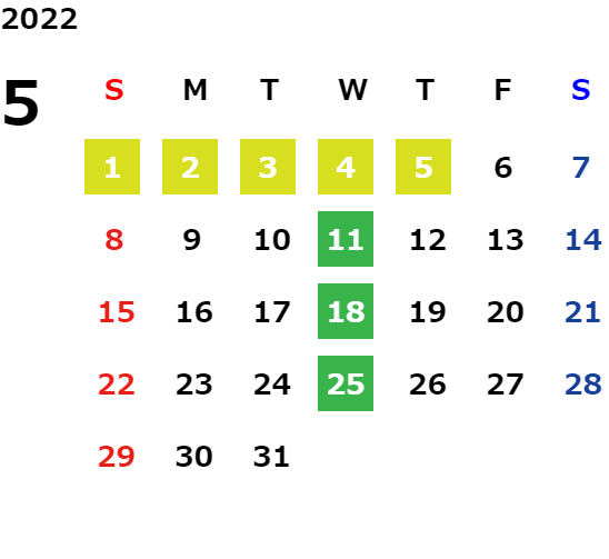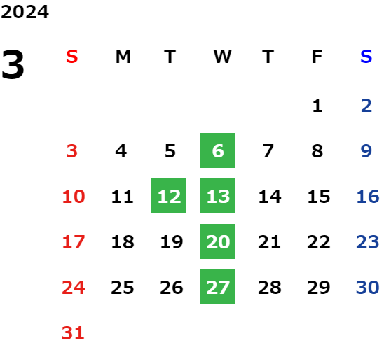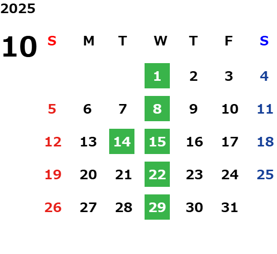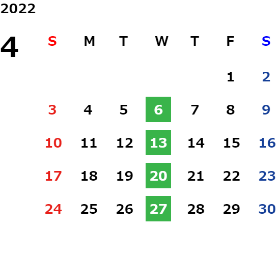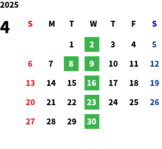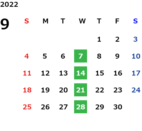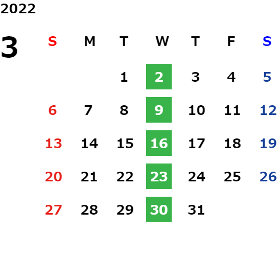 毎週水曜日・毎月第二火曜日